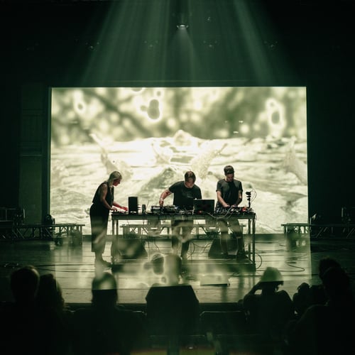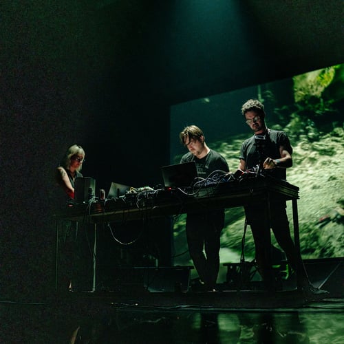 몬트리올의 트리오 프로젝트 ‘mesocosm(메소코즘)’은 자연 생태계를 연구 및 실험 목적으로 축소한 중간의 생태계를 의미한다. 그리스어로 meso(medium)와 cosm(world)이 결합된 이 용어는, 연구자들이 생태적 상호작용을 관찰하고 실험하기 위해 자연 환경을 재현한 실험 공간을 가리킨다. 프로젝트 ‘mesocosm’은 자연과 실험실, 인공과 자연 사이의 중간 세계를 상징하며, 인간, 자연, 기술이 공존하는 가상 생태계를 탐구한다. ‘mesocosm’은 비디오그래퍼 Emma Forgues와 음악가 Philippe Vandal, Joël Lavoie의 협업으로 탄생했으며, 모듈러 합성, 현장 녹음, 컴퓨터 생성 요소, 실시간 비디오 조작 등을 결합하여 자율적인 생태계를 탐구한다. 첫 작품인 <Prelude 프렐류드>는 글리치, 노이즈, 앰비언트, 전자음향의 불규칙하고 예측 불가능한 사운드스케이프를 통해 혼돈과 조화의 경계를 넘나들며, 인공과 유기적 요소가 공존하는 새로운 현실을 제시한다. mesocosm은 관객들을 외계 생태계로 초대하여, 합성적이면서도 유기적인 사운드스케이프가 어우러진 독특한 오디오 비주얼 여정을 제공한다.