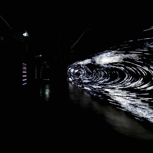 충돌은 태양에서 방출된 에너지 입자들이 지구 자기장 입자들과 충돌하는 순간을 시각화한 인터랙티브 작품이다. 관객의 터치에 따라 태양풍과 지구 자기장의 상호작용이 실시간으로 패턴화되어, 자연의 힘이 시각적·동적 표현으로 드러난다. 작품은 태양풍의 변화가 지구의 전리층에 미치는 영향, 라디오 통신 간섭, 그리고 동물의 자기장 감지 능력 변화와 같은 현상에 영감을 받아 제작되었다. 관객은 터치를 통해 태양 에너지 분출의 역동성을 체험하며 자연과 기술, 인간의 상호작용을 탐구하게 된다.