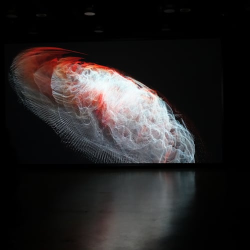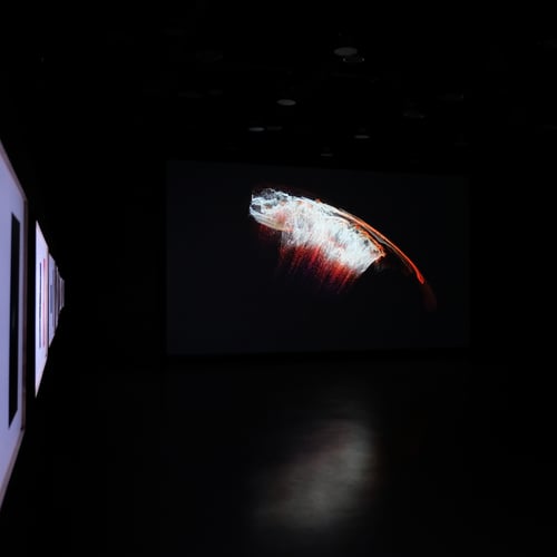 "unfold.alt"는 원래 설치 작품으로 개발된 "unfold"의 단일 스크린 버전입니다. 이 작품은 별 형성 과정의 10단계를 역시간 순서로 보여줍니다. 원본 설치 작품 버전에서는 성간 물질, 분자 구름, 거대 항성 충돌, 필라멘트 형성, 전성(前星) 핵, 원시성 형성, 핵융합과 자기장, 초신성, 중력 붕괴, 중성자별의 시간 순서로 배열되어 있습니다. — 천체물리학 분야의 최신 발견에서 영감을 받은, 일본 작가 료이치 쿠로카와(Ryoichi Kurokawa)의 새로운 몰입형 감각 설치 작품인 "unfold"는 별과 은하의 형성과 진화를 둘러싼 현상들을 소리, 이미지, 진동으로 번역하고자 합니다. 2003년부터 료이치 쿠로카와는 기술적 완벽성과 예술적 아름다움을 결합한 다양한 디지털 아트워크를 제작해 왔습니다. 그의 작품들은 장관을 이루는 시청각 콘서트, 청각 및 다중 스크린 영상 설치 작품, 그리고 홀로그램 및 몰입형 작업의 형태를 띠어왔습니다. 그의 미학 – 추상과 구상의 교차 – 은 일반적으로 순수한 기하학적 형태, 픽셀, 인상주의적 색채, 익숙한 풍경과 실루엣과 더불어, 자연 및 도시의 소리를 모두 아우르는 오디오 질감(텍스처)으로 구성됩니다. 진화와 소멸(때로는 갑작스럽고, 때로는 점진적인)에 초점을 맞춘 쿠로카와 작품의 모습은 우리를 일차적 인지 지각의 우주로서, 우리 일상을 채우는 이미지와 소리의 끊임없는 흐름 속으로 되돌려 놓습니다. 새로운 재현의 코드 "unfold"에서 료이치 쿠로카와는 최근 발견에서 영감을 받은 예술/과학 프로젝트를 위해 청각적 및 시각적 재료를 융합하는 공감각적인 것에 관심을 갖습니다. 이러한 발견은 유럽우주국(ESA)과 NASA의 위성, 특히 허셜 우주 망원경이 생성한 데이터를 기반으로 CEA-IRFU의 천체물리학자들이 이루었습니다. 망원경의 원적외선 복사 관측은 100억 년에 걸쳐 별 탄생의 일부 조건과 은하 생명의 역사를 밝혀냈습니다. 별 형성의 우주론적 역사, 특히 별이 태어나는 분자 구름의 필라멘트 구조를 추적할 수 있게 하는 이 데이터 외에도, 작가는 CEA-IRFU의 천체물리학자들이 슈퍼컴퓨터의 도움으로 제작한, 우주와 그 구조를 모델링하기 위한 수치 시뮬레이션에 자신의 논리를 기반했습니다. 천체물리학자(이자 CEA-IRFU 연구원)인 빈센트 미니에(Vincent Minier)의 감독 하에 제작된 이 프로젝트는 또한 수집된 데이터의 재현(표현)과 발표 방식에 의문을 제기하기 위해 연구와 과학적 발견을 넘어서도록 합니다. 이 주제에 대해 미니에는 비록 "이러한 관측 결과의 표현과 대중 공유는 일반적으로 아름다운 색채 이미지(채색된 이미지)를 통해 이루어지지만", 그 색채는 결코 관측된 대상의 실제 색상을 나타내는 것이 아니라 오히려 "'빛의 강도, 밀도, 온도 또는 화학적 구성'을 나타내기 위한 것"이라고 상기시킵니다. 그는 쿠로카와의 작업이 "결과 패턴의 확립, 과학적 해석, 그리고 이러한 결과 뒤에 있는 기술의 표현을 가능하게 하는" 새로운 시각화 형태를 상상하기 위해 "'대기 가장자리에 있는 성운의 일반적인 코드'에 의문을 제기한다"고 평하며, '수학적 아름다움'과 '이 데이터의 중요성에 대한 몰입'에 더 기꺼이 초점을 맞춘다고 덧붙입니다. 변환의 미학 이 일본 작가의 작업은 거의 한 세기 동안 미술사의 많은 부분을 관통하는, 전사(轉寫) 또는 변환의 미학이라고 규정할 수 있는 경향, 즉 다양한 윤곽을 가진 미학과 궤를 같이합니다. 지난 15년 동안 디지털 아트 분야에서 많은 작가들은 디지털 데이터에 대한 우리의 상상력을 포착하기 위해 설치 작품과 시청각 콘서트를 (민감하고, 청각적이거나 시각적인 형태로) 구체화하려고 노력해왔습니다. 다른 이들은 보다 공감각적인 관점에서 신호라는 개념을 보여주고자 합니다. 즉, 기계의 도움으로 소리 신호를 시각화하고, 컴퓨터 계산을 통해 이미지를 (기꺼이 추상적이고 기하학적인) 소리로 바꾸는 것을 목표로 합니다. 이러한 흐름은 1920년대에 시작되었는데, 당시 많은 예술가들은 움직임, 추상성, 기하학, 때로는 구체적인 형상들이 음악의 역동성에 더 부합하는 것처럼 보였던 시간 기반의 시각 작품을 탄생시키려 노력했습니다. 이러한 접근 방식의 선구자로는 발터 루트만(Walter Ruttman), 한스 리히터(Hans Richter), 비킹 에겔링(Viking Eggeling), 라슬로 모호이너지(László Moholy-Nagy) 등이 있습니다. 보다 최근 수십 년 동안에는 시각 음악의 힘을 통해 오스카 피싱거(Oskar Fischinger), 렌 라이(Len Lye), 노먼 매클래런(Norman McLaren)이 이러한 원칙 중 일부를 탐구했습니다. 1960년대 후반부터 1980년대 말까지 예술가들은 실험실, 스튜디오, 연구 및 창작 기관에서 컴퓨터와 비디오 장비에 접근할 수 있게 되었습니다. 이는 세기 초 아방가르드가 시작한 아이디어에 새로운 자극을 주었으며, 존 휘트니(John Whitney), 에드 엠쉴러(Ed Emshwiller), 스타이나 & 우디 바술카(Steina & Woody Vasulka) 듀오의 영화와 비디오(때로는 연구 형태)를 떠올리게 합니다. 이들 모두는 추상의 영역을 계속 오르내렸고, 한편 로베르 카엥(Robert Cahen)과 게리 힐(Gary Hill)과 같은 영화 제작자들은 묘사와 언어의 경계를 탐구했습니다. 비록 료이치 쿠로카와가 현대 미술의 내